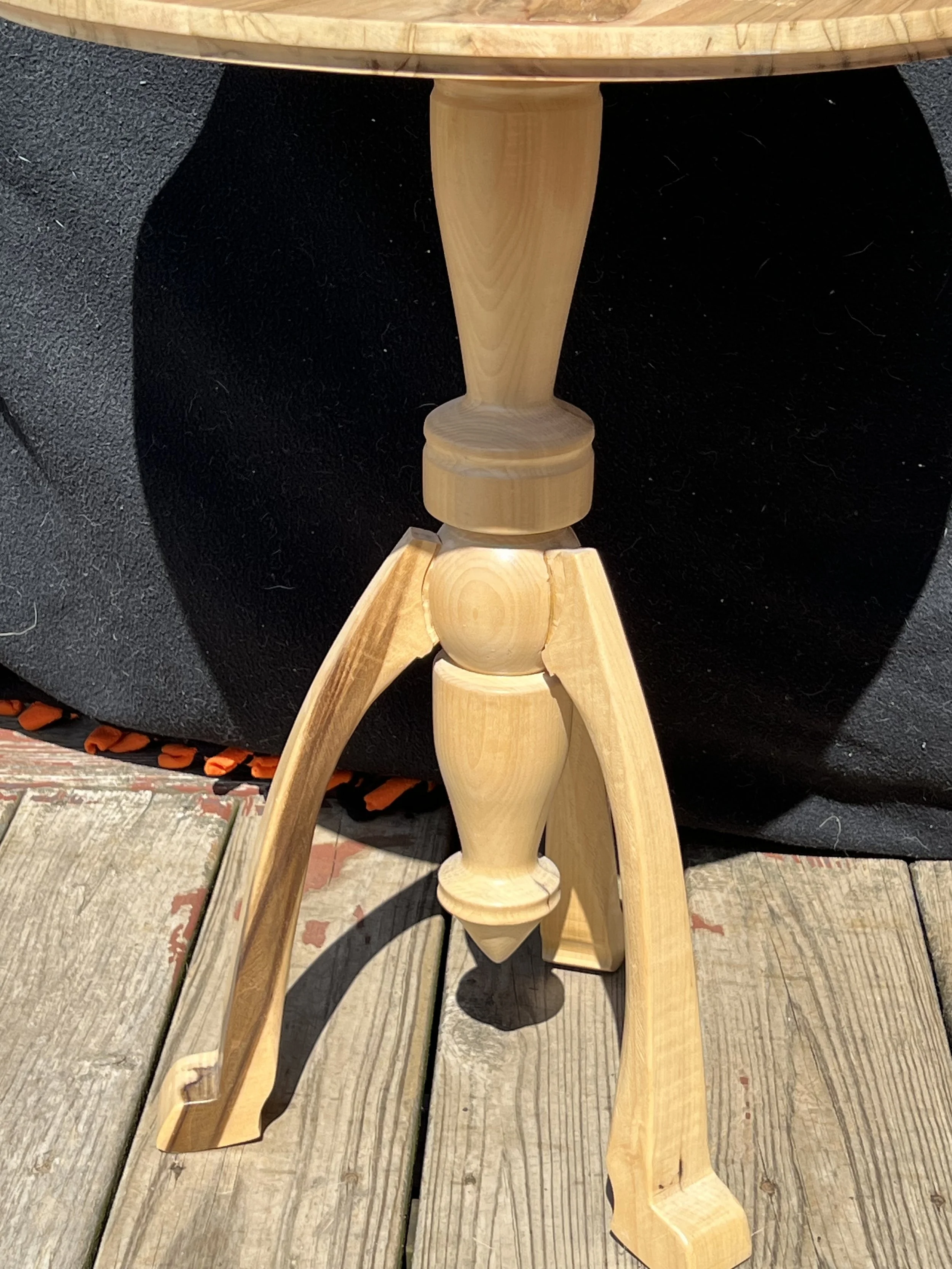 Poplar was selected for the base and legs due to its workability and ability to take on detailed shaping, allowing the turned and carved elements to come through cleanly and intentionally. It also, resembles Maple well to blend the two woods.
